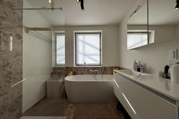 - Badkamer met ligbad, inloopdouche en dubbel lavabomeubel
