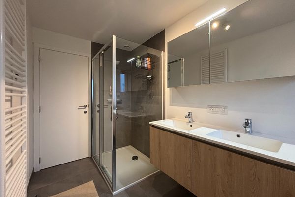 - Badkamer met bad, inloopdouche en dubbel lavabomeubel