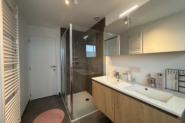 - Badkamer met bad, inloopdouche en dubbel lavabomeubel