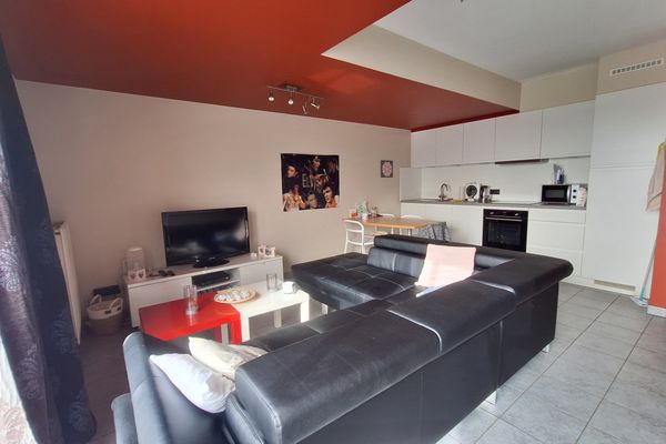 De leefruimte met open keuken vormt het hart van het appartement en geeft toegang tot een zuidgericht terras, ideaal om te genieten van de zon.